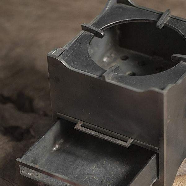 工業(yè)風(fēng)與傳統(tǒng)茶道的一次激情碰撞,近些年來(lái)工業(yè)風(fēng)備受歡迎,幾乎全世界各個(gè)城市,都可以看到以工業(yè)風(fēng)格為主題的餐廳或咖啡廳。工業(yè)風(fēng)的粗狂、神秘、個(gè)人特色十足。金屬是種堅(jiān)韌又耐久的材料。從工業(yè)革命開(kāi)始以后人類(lèi)的生活中就不斷地出現(xiàn)金屬制的生活用品。設(shè)計(jì)師選用5mm厚度的鋼材,結(jié)合時(shí)下風(fēng)靡的金屬工業(yè)風(fēng)設(shè)計(jì)理念,在實(shí)用與美學(xué)之間尋求平衡點(diǎn),圍爐煮茶鐵爐應(yīng)運(yùn)而生,可滿(mǎn)足日常煮茶、燒烤、煲湯等居家實(shí)用性,經(jīng)久耐用又不乏美感。